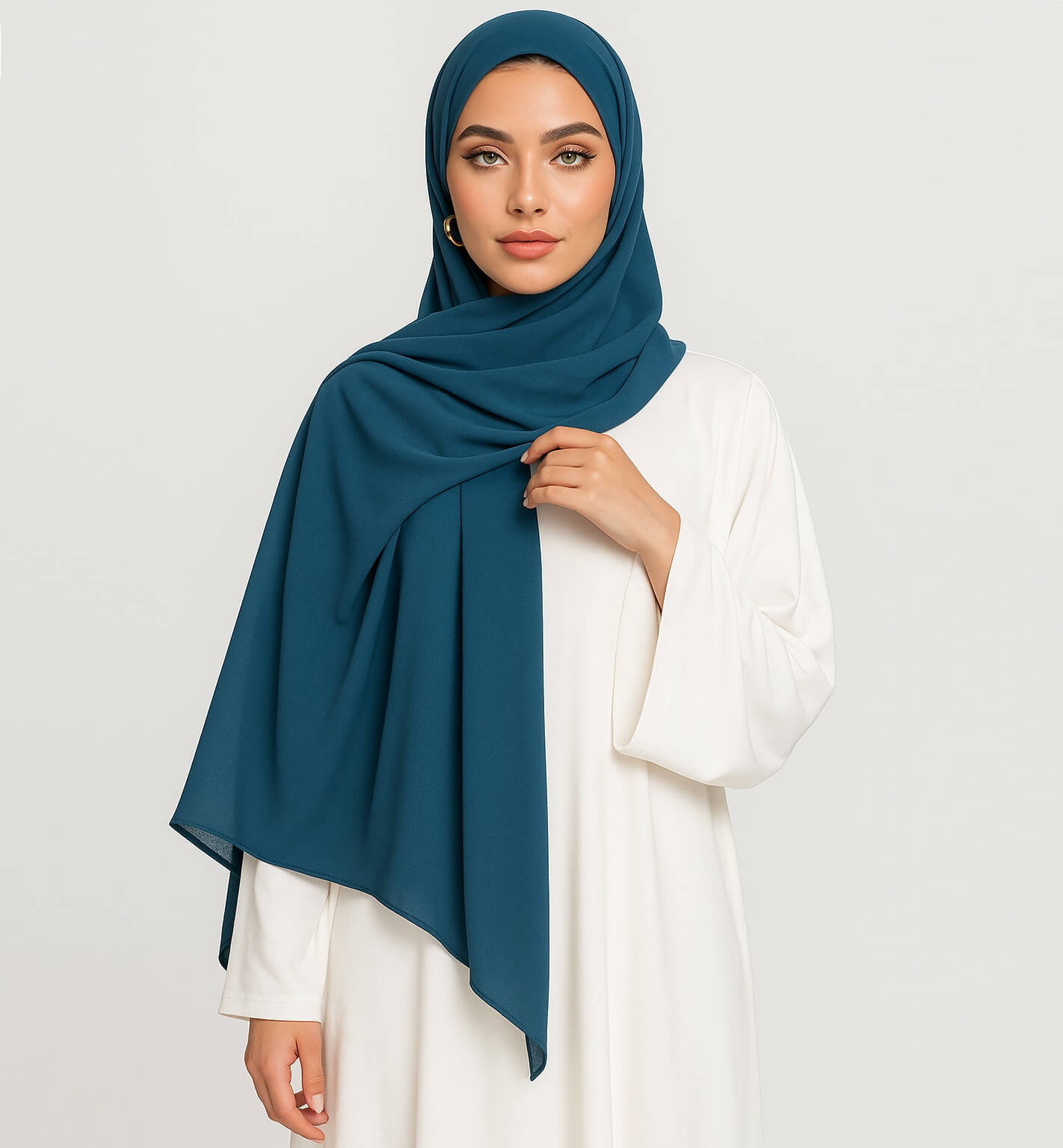 Der Islamic Scarf in Azurblau lässt sich vielseitig kombinieren – ob zu hellen Tönen wie Weiß und Sand oder als Kontrast zu dunkleren Farben wie Schwarz und Rot. Ideal für Alltag, festliche Anlässe oder religiöse Veranstaltungen.