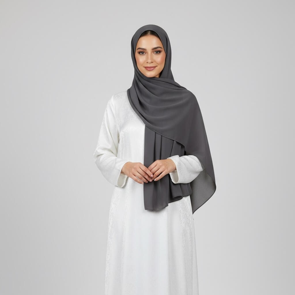 Chiffon Hijab Dunkelgrau | Zeitlose Eleganz in Grauer Nacht
