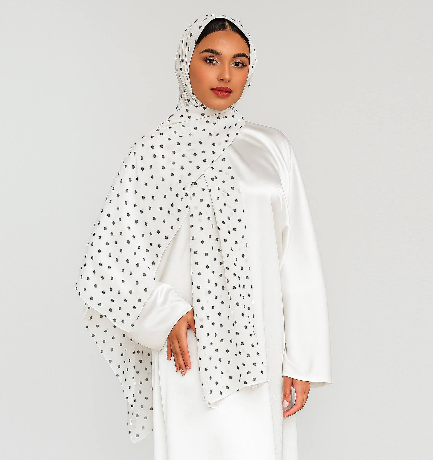 Ganz gleich, ob du nach einem leichten Hijab für den Sommer, einem klassischen Kopftuch mit Muster oder einem eleganten Chiffontuch für besondere Gelegenheiten suchst – mit diesem weißen Hijab mit schwarzen Punkten bist du stilvoll ausgestattet. Ideal für moderne Muslima, modebewusste Frauen oder einfach für alle, die Wert auf hochwertige, flexible Modeaccessoires legen.