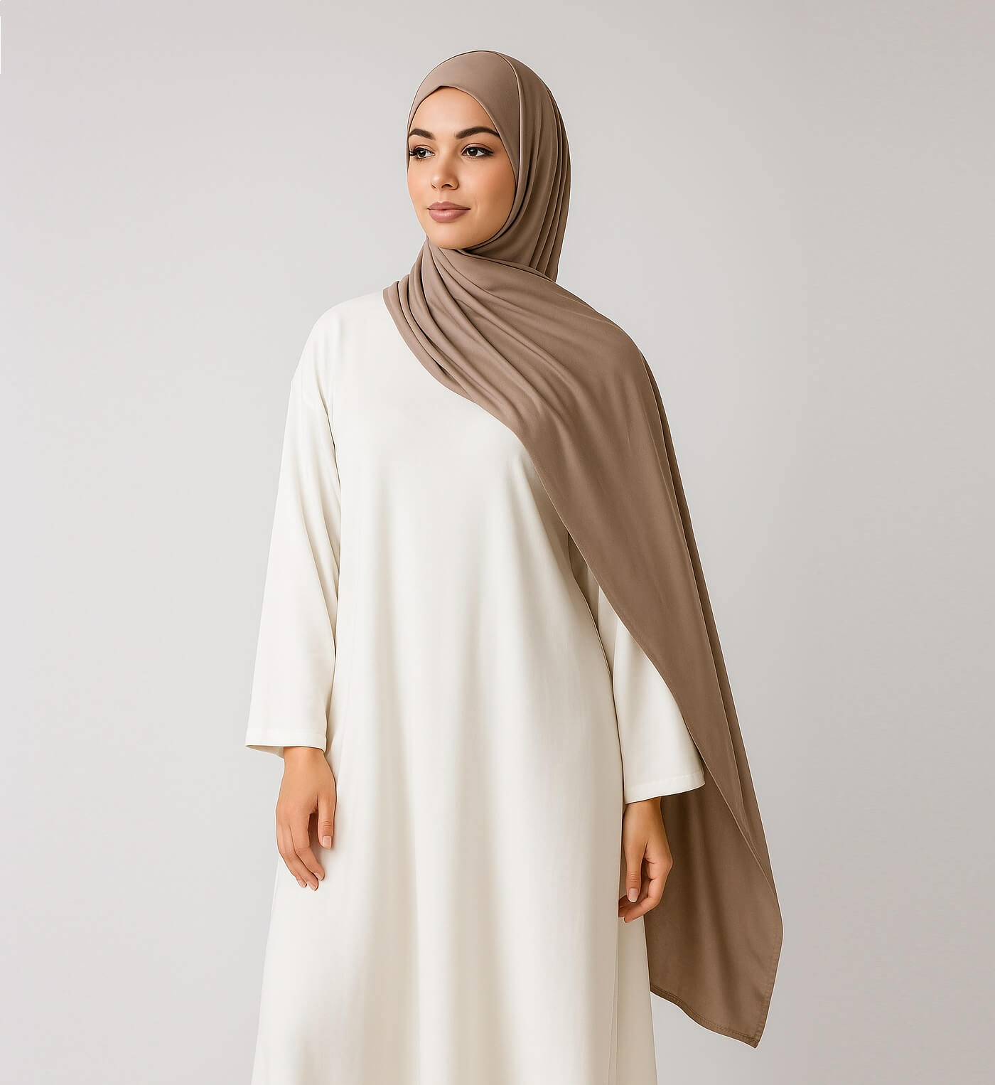 Ob als bequemes Hijab für den Alltag, als dezentes Accessoire im Büro oder als elegantes Tuch für festliche Anlässe – der Sand Jersey Hijab passt sich jedem Look mühelos an.