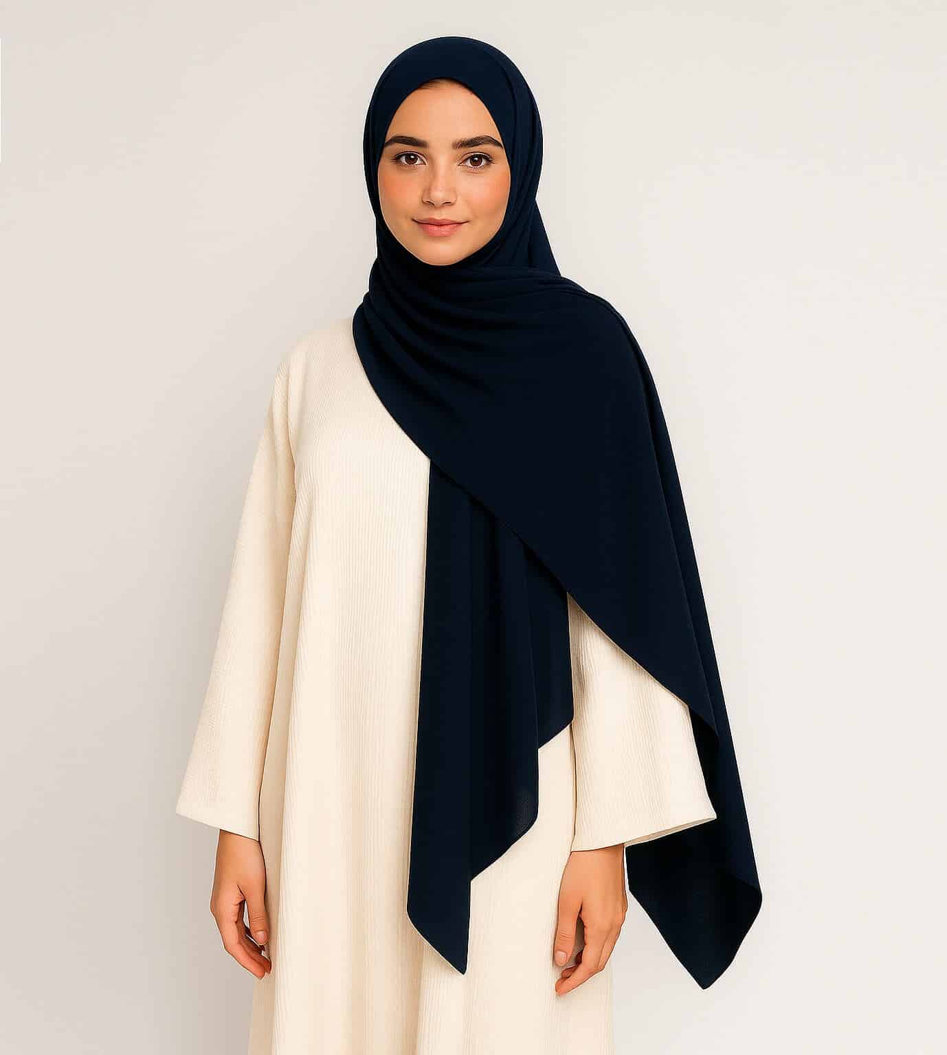 Dunkelblau passt hervorragend zu neutralen Farben wie Beige, Weiß oder Grau – ein echter Allrounder für jede Garderobe mit Fokus auf modest wear.